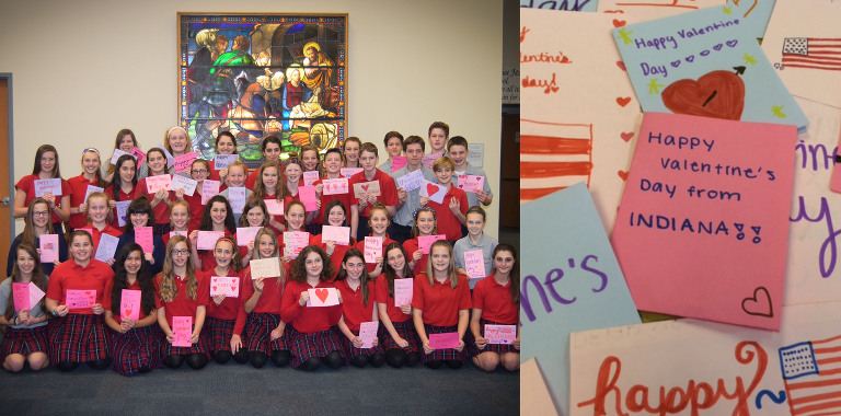 St. Maria Goretti Catholic School participated in a Valentine’s Card Drive as part of the Golf Ball Drive to Support Our Military. These Valentine’s, totaling 175, were delivered to Camp Atterbury on Friday, February 10, 2017.