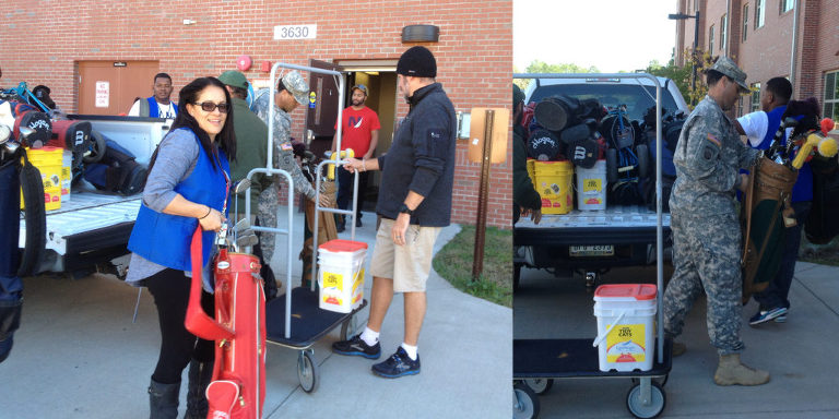 Photos below are of American Red Cross transport of donated golf clubs and balls to the Marines and Sailors of Wounded Warrior Battalion – East to aid in their recoveries.
