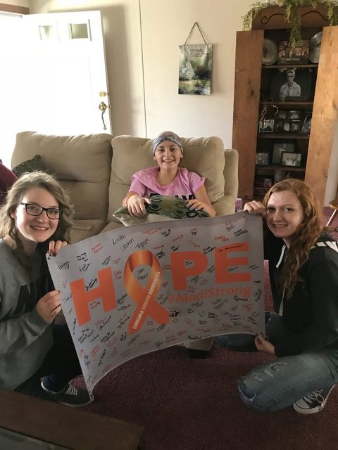 Madi Moore was diagnosed with Acute Myeloid Leukemia in January of 2018 at 15 years old. She went into remission in August of 2018 after 8 months of battling cancer. After a Bone Marrow Transplant on August 31, 2018, She continued to develop many infections which resulted in Graft VS Host Disease (transplant cells attacking her normal cells). Since May 2019, she has been in the ICU.