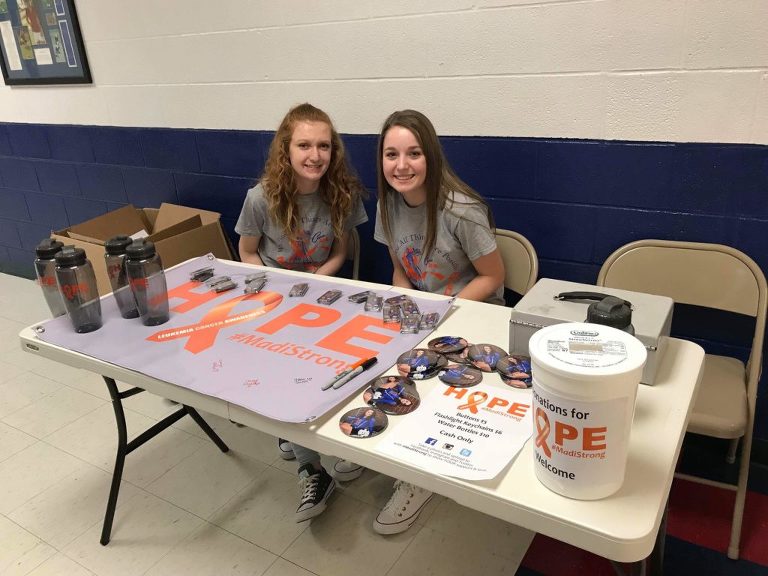 HCP Model Ambassador Chaisey Wasnidge and her mother, Stephanie, headed a campaign to assist Madi Moore and Family. They sold Water Bottles, Buttons and Flashlight Keychains to benefit the family prior to a boys varsity basketball game at Linton (pictured above).
